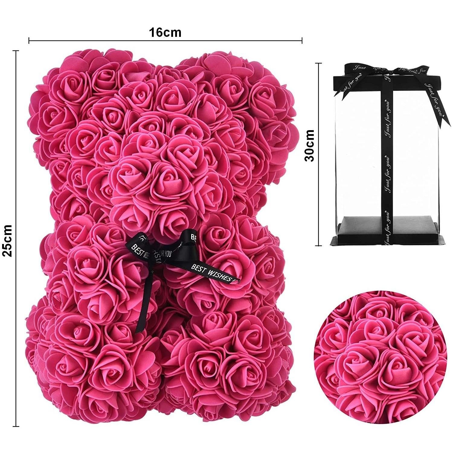 Adorable pink rose teddy bear made of soft foam roses in a luxury gift box. It’s perfect for expressing affection, friendship or love.