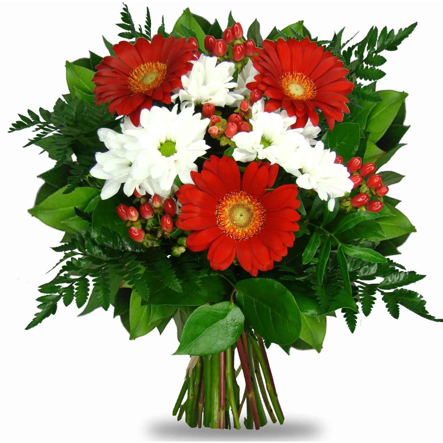 Standardní 2 ks chrysanthéma 3 ks germína, 2 ks hypericum a dekorativní zeleň