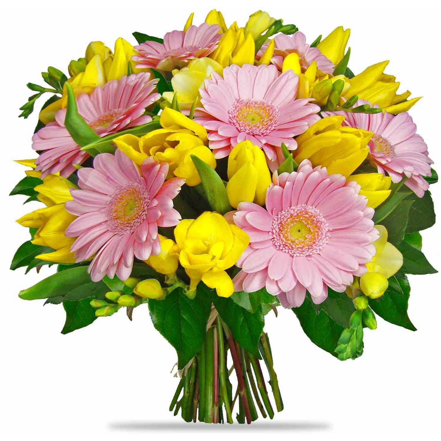 Standardní 5 ks tulipán, 3 ks frézie, 5 ks germínka, salal