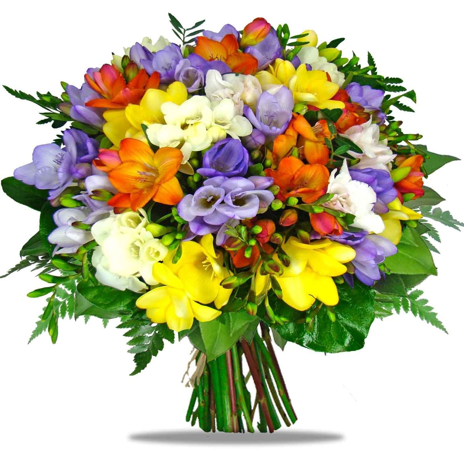 30 ks frézie a dekorativní zeleň (salal, rumora, pistacie)