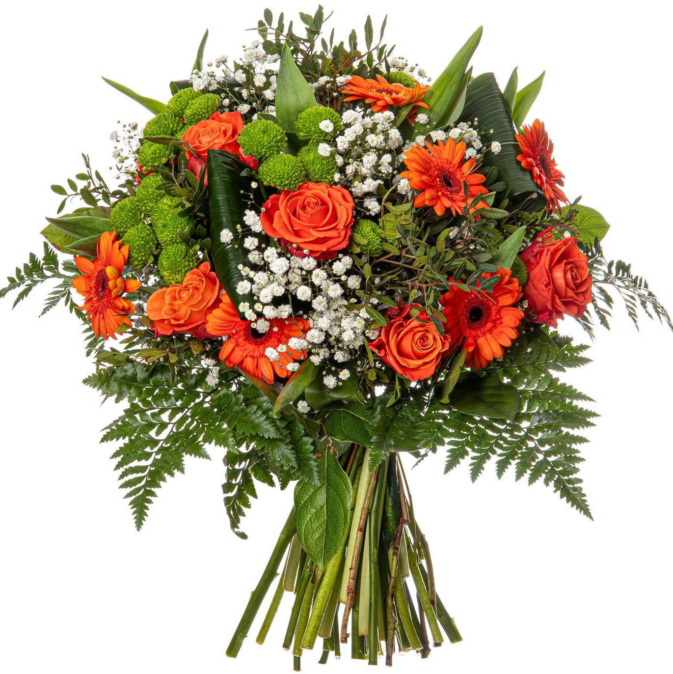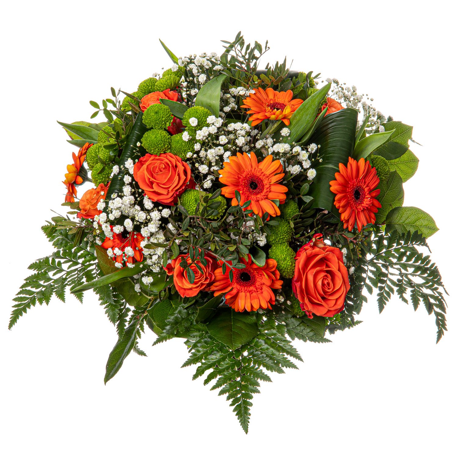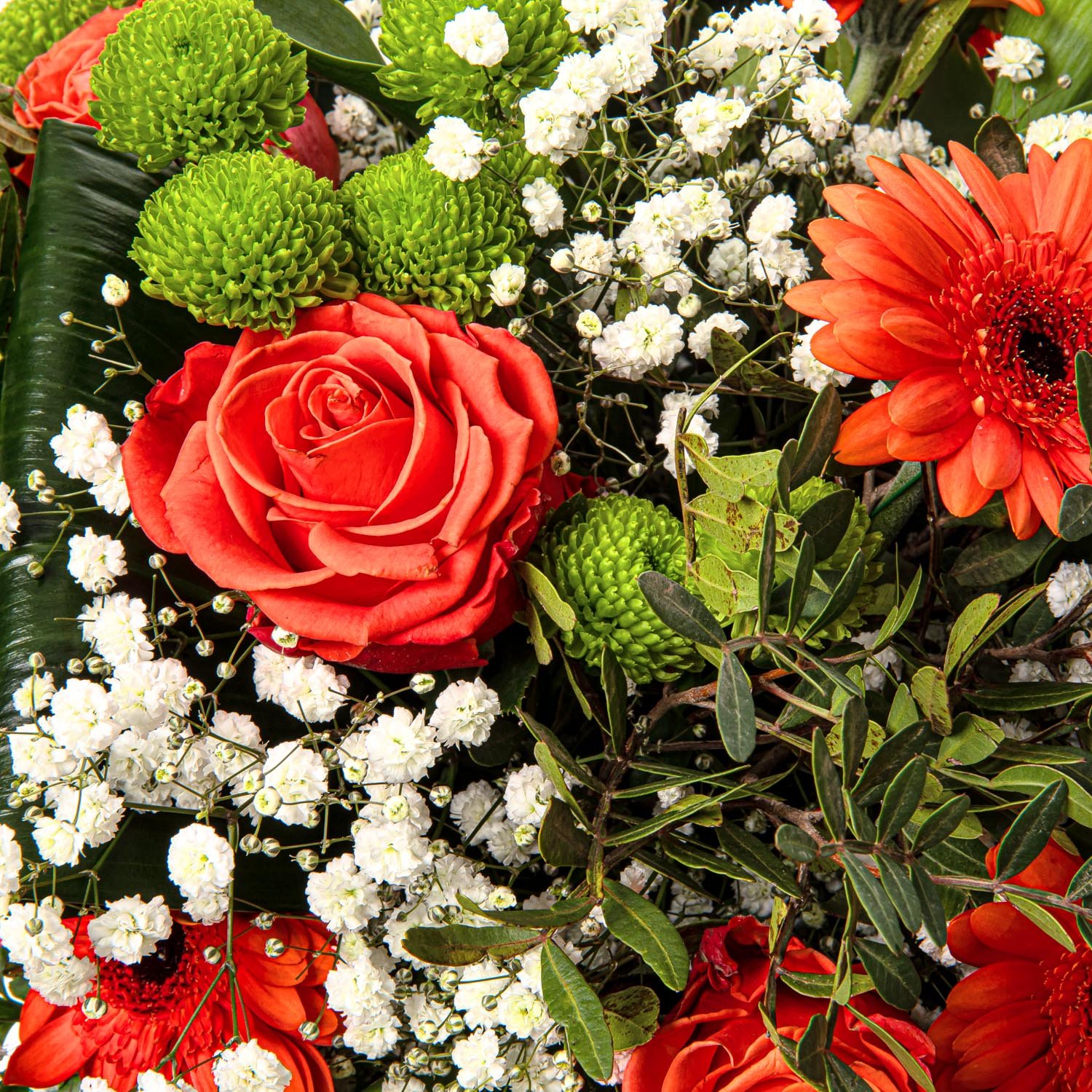 Standardní | 3 ks růže, 3 ks gerbera mini, 3 ks santini, 3 ks gypsophila a dekorativní zeleň (aspidistra, pistacie, salal, rumora) |